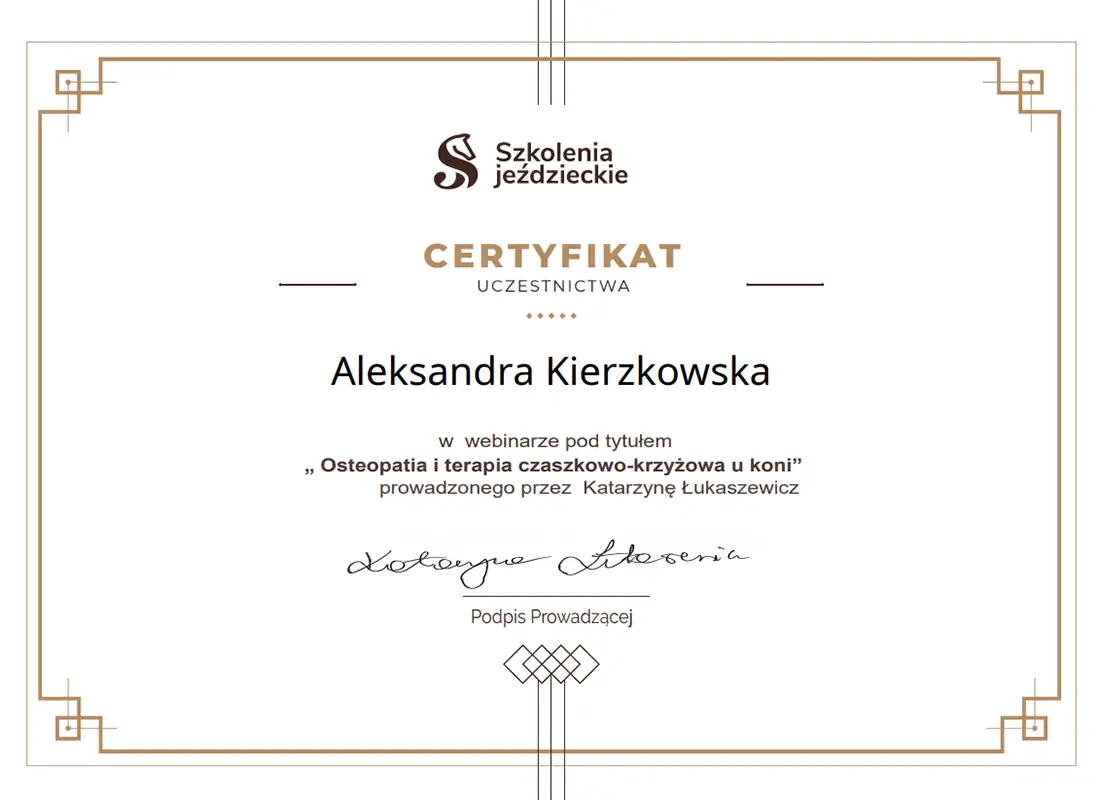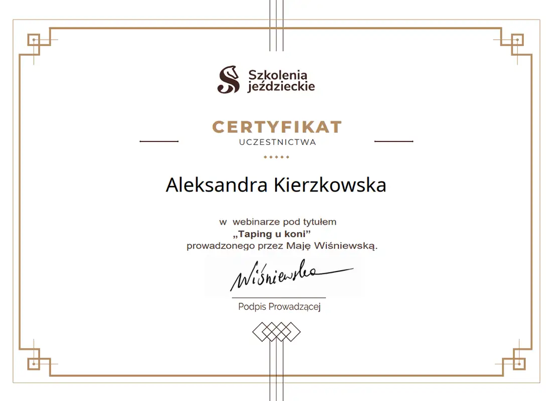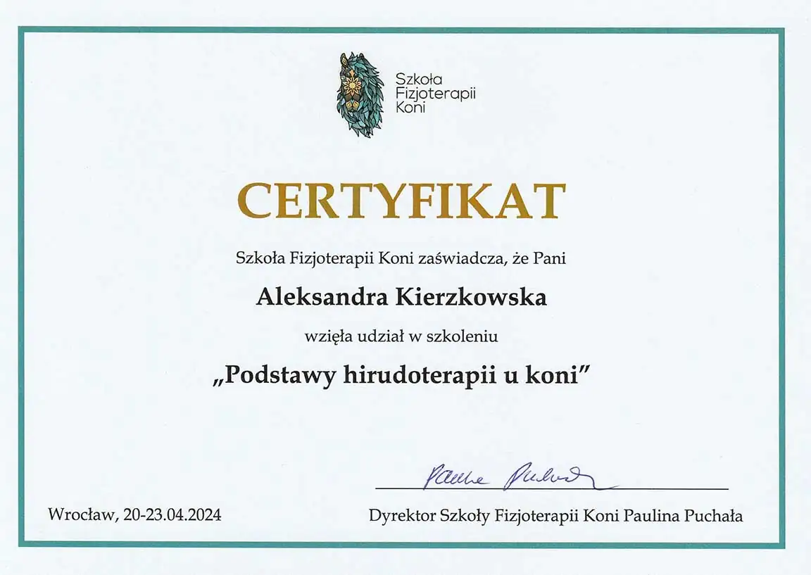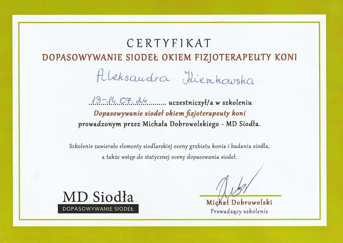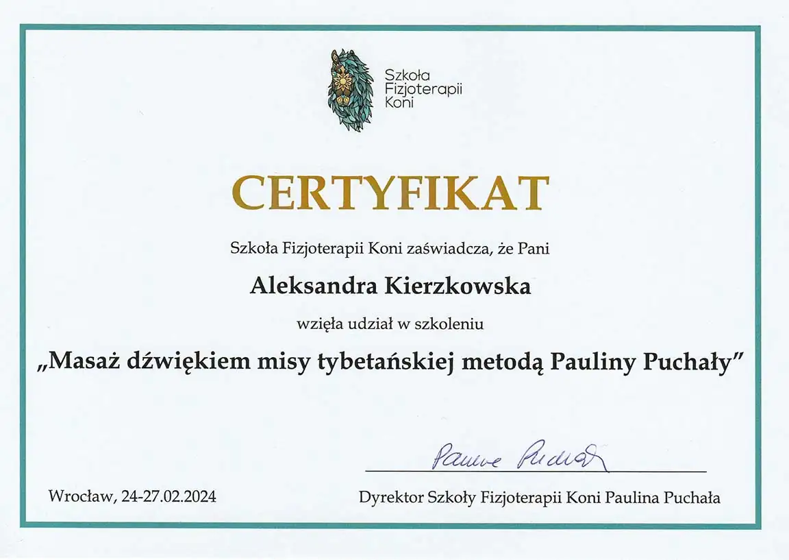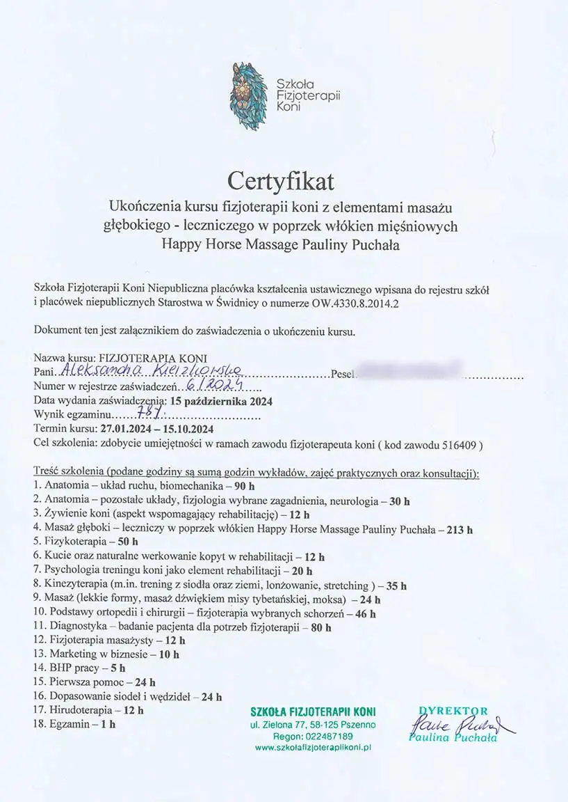 Wszechstronna wiedza, którą zdobyłam - i wciąż zdobywam - pozwala mi patrzeć na konie holistycznie. Wierzę, że wszystko ma znaczenie i każdą informację warto brać pod uwagę. Napędza mnie świadomość, że moja praca realnie pomaga koniom - poprawia ich samopoczucie, a one same pokazują, że są za to wdzięczne. Dzięki temu wiem, że to, co robię, ma sens.