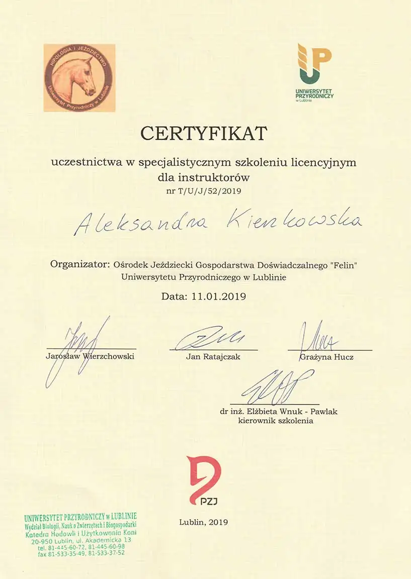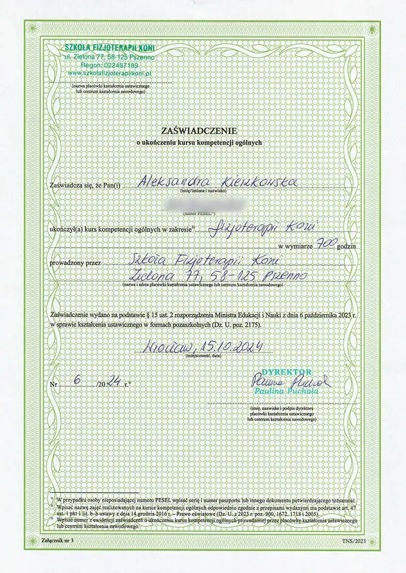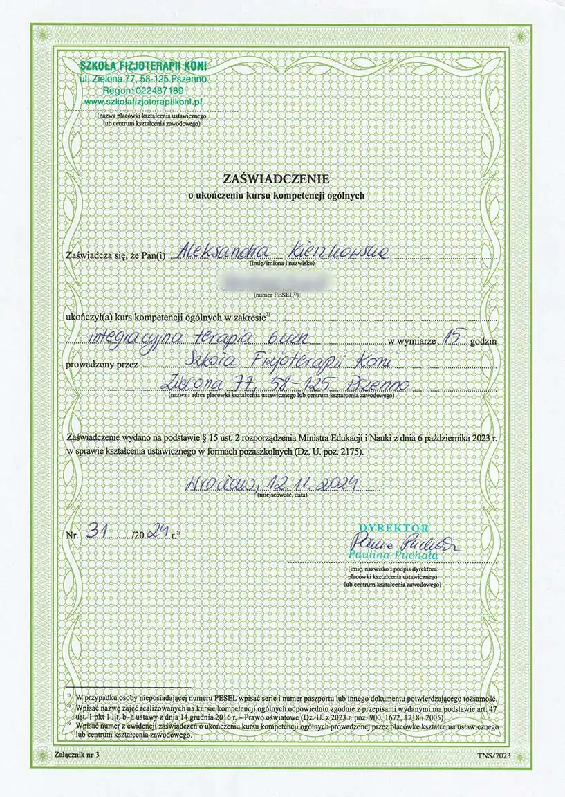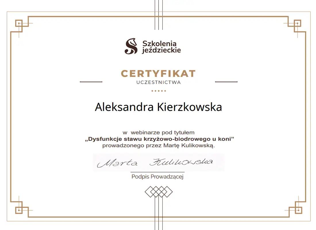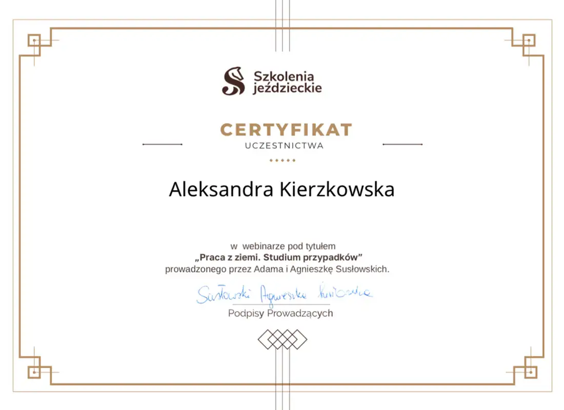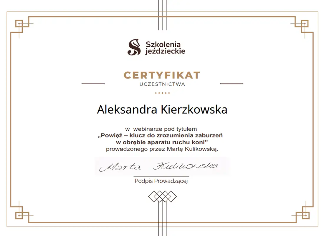 Wszechstronna wiedza, którą zdobyłam - i wciąż zdobywam - pozwala mi patrzeć na konie holistycznie. Wierzę, że wszystko ma znaczenie i każdą informację warto brać pod uwagę. Napędza mnie świadomość, że moja praca realnie pomaga koniom - poprawia ich samopoczucie, a one same pokazują, że są za to wdzięczne. Dzięki temu wiem, że to, co robię, ma sens.